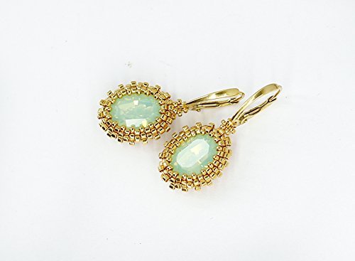 -. Brand : Julia Lavrik Design -. Color : Chrysolite Opal, Light green, Pastel Green -. Department : Women -. ProductGroup : Guild Product -. ProductTypeName : GUILD_JEWELRY -. Title : 24k Gold filled Luxury High Fashion Beadwork Leverback Oal Earrings with Chrysolite Opal Swarovski crystals Gift for Women Handmade Jewelry Drop/Dangle