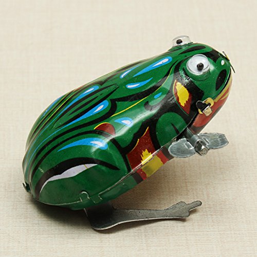 Studio : SICA Publisher : SICA Binding : Toy Product Description Funny Wind Up Moving Eyes Jumping Frog Toy Clockwork Spring Tin Toy Features: This sharp looking jumping frog has bright color and modern vintage-style Wind it up with the built in key and watch it madly hop its way across the table All metal construction, comes to you brand new in box A perfect collectible decoration for adult Great toy for children Type:Clockwork Spring Toy Shape:Frog Size:7cm×5cm×4.5cm Weight:45g Material:Tin Package include: 1×Frog Tin Toy