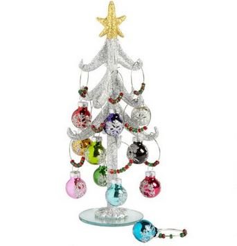 -. Brand : Nantucket Home -. Color : Silver -. EAN : 0746278689003 -. Feature : Crafted of art glass and metal / Tree stand includes 12 multicolored mini wine charm ornaments / Measurements: 5.5"Dia. x 9.5"H -. ProductGroup : Kitchen -. ProductTypeName : KITCHEN -. Size : 9.5' x 5.5" -. Title : Silver Christmas Tree with Wine Charm Ornaments Set of 12 -. UPC : 746278689003