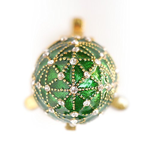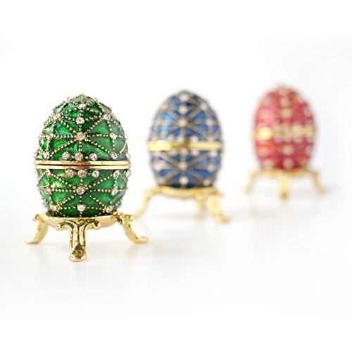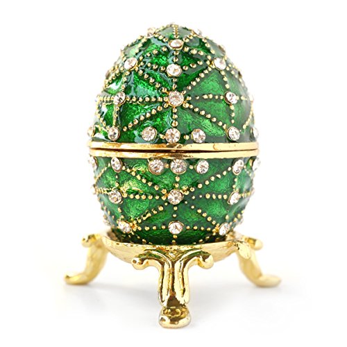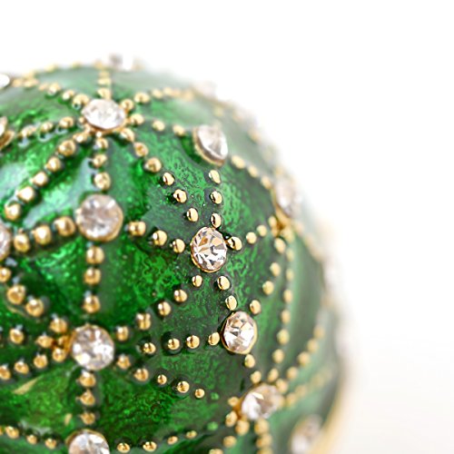 Hand-Painted Mini Faberge Egg with Rich Enamel and Sparkling Rhinestones Jewelry Trinket Box (Green)