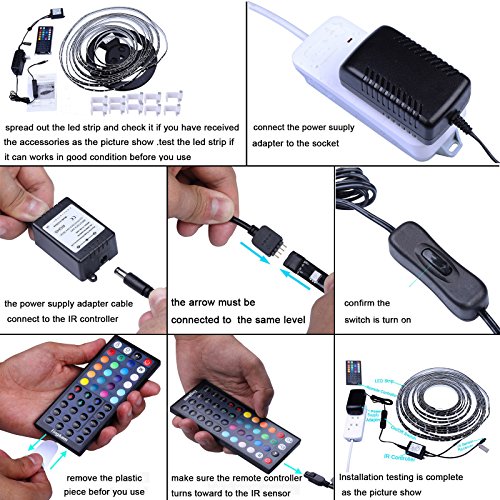 - 【Several Applications】The RGB LED strip lights can be used for decorating your home (e.g. dining room, bed room, upstairs,home, kitchen,patio, porch and living rooms). Great for holidays and events like Christmas, Halloween and Birthday Parties!