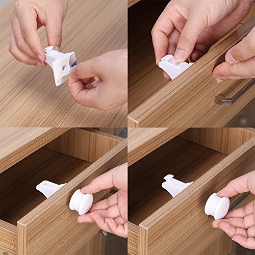 KEEP BABY SAFE- Just imagine a lock that's invisible and concealed from everyone - including toddlers - since its installed on the inside of the cabinets making your home more appealing, while also providing ideal child protection. Better safe than sorry! EASY TO INSTALL- No need for using tools or drills to install this simple mechanism. Requires no drilling, simple install on any cabinet with the pre-applied 3M tape. With simple adhesive the lock stays in place. 3 minutes to Install QUALITY- I