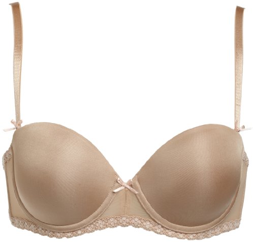 Strapless, foam-lined demi cup underwire push-up bra, 3 column, 2 row hook and eye back closure. Stretch microfiber, Level 1: Add Half Cup. Stay-put silicone lining and side boning for support b.tempt'd by Wacoal, Style Number: 954108.