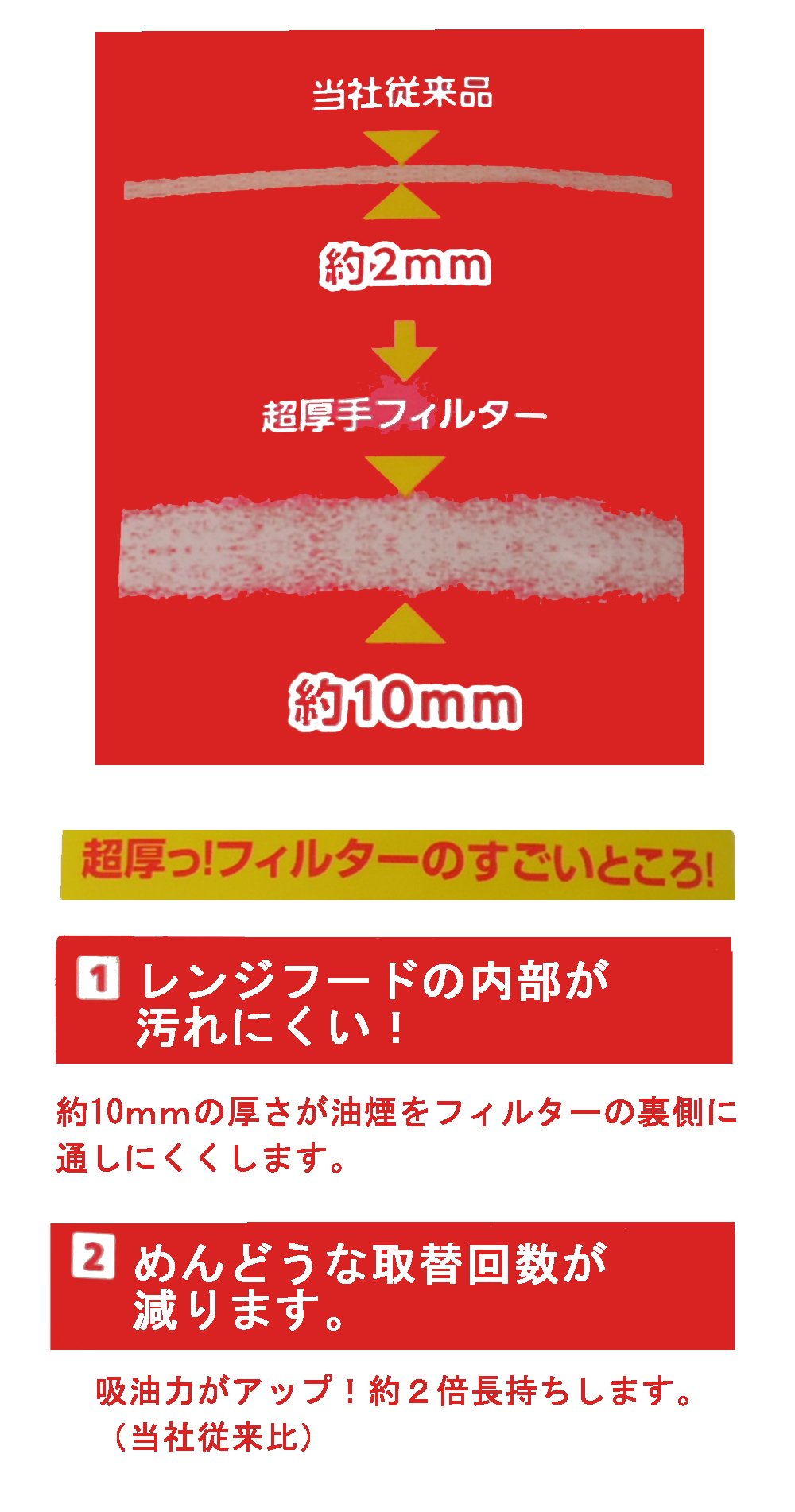 Shallow type): 45 cm 4 batch, 60 cm 3 batch ● With a super thick type filter with about 3 times oil absorption (compared to our previous product), we catch even tiny oil smoke that we could not ever take. ● Without removing the metal filter