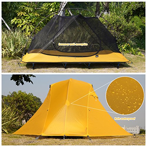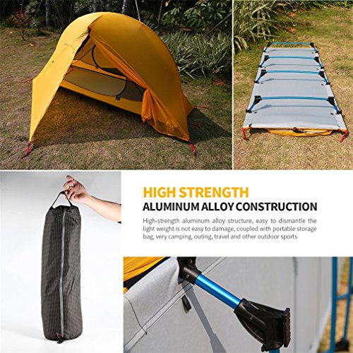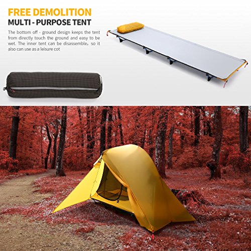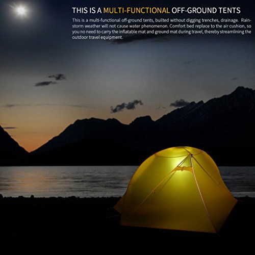 Professional Design:This is an off-ground portable tents,which can be builted without digging trenches and drainage,keeping the tent from directly touch the ground and easy to be wet, no worry in rainstorm weather.And it has a strong and comfortable bed,no need to carry the inflatable mat and ground mat during travel any more,thus streamlining the outdoor travel equipments.