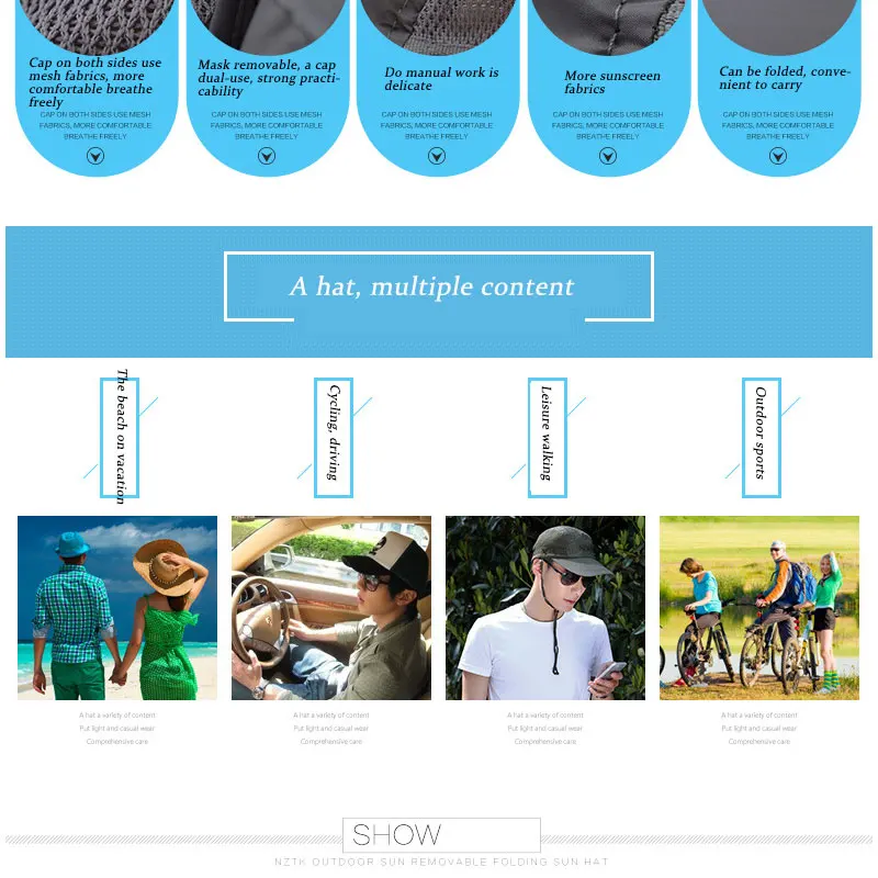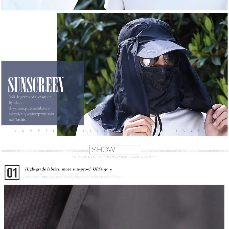 | [해외]전문 여름 태양 모자 보호 캡 여성 남성 목 얼굴 선 스크린 플랩 모자 어부의 모자 태양 모자 마스크 야외 |