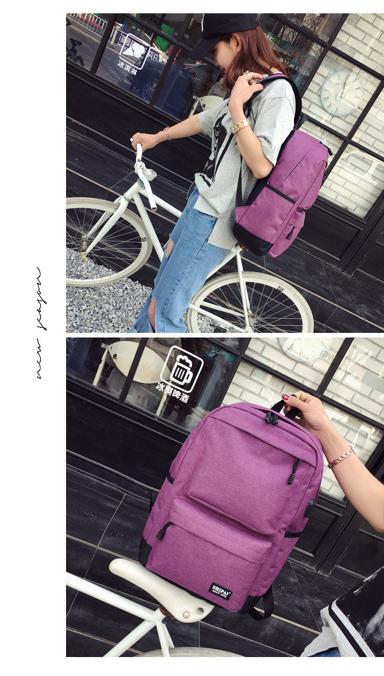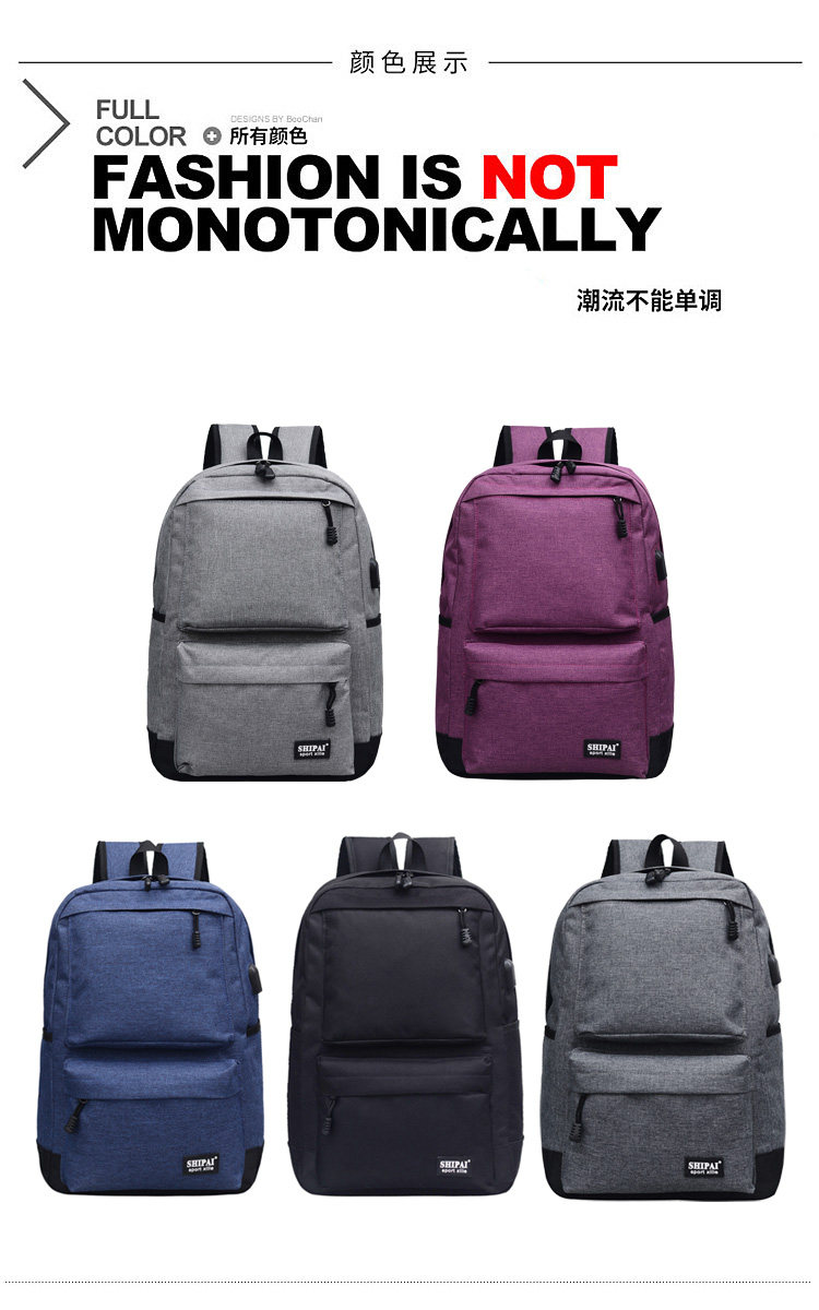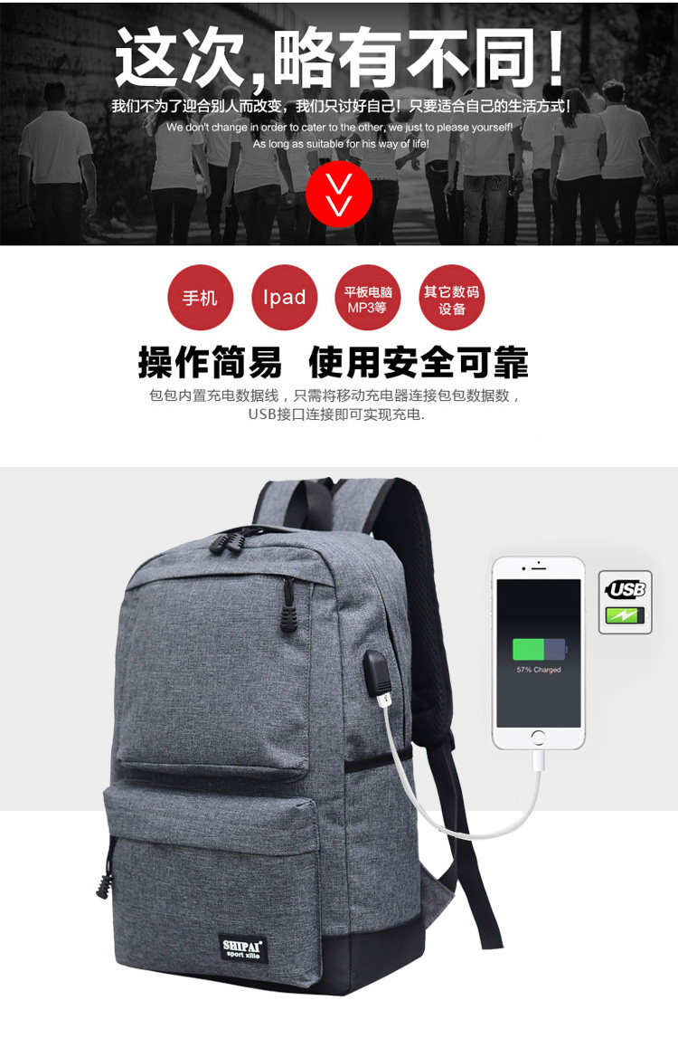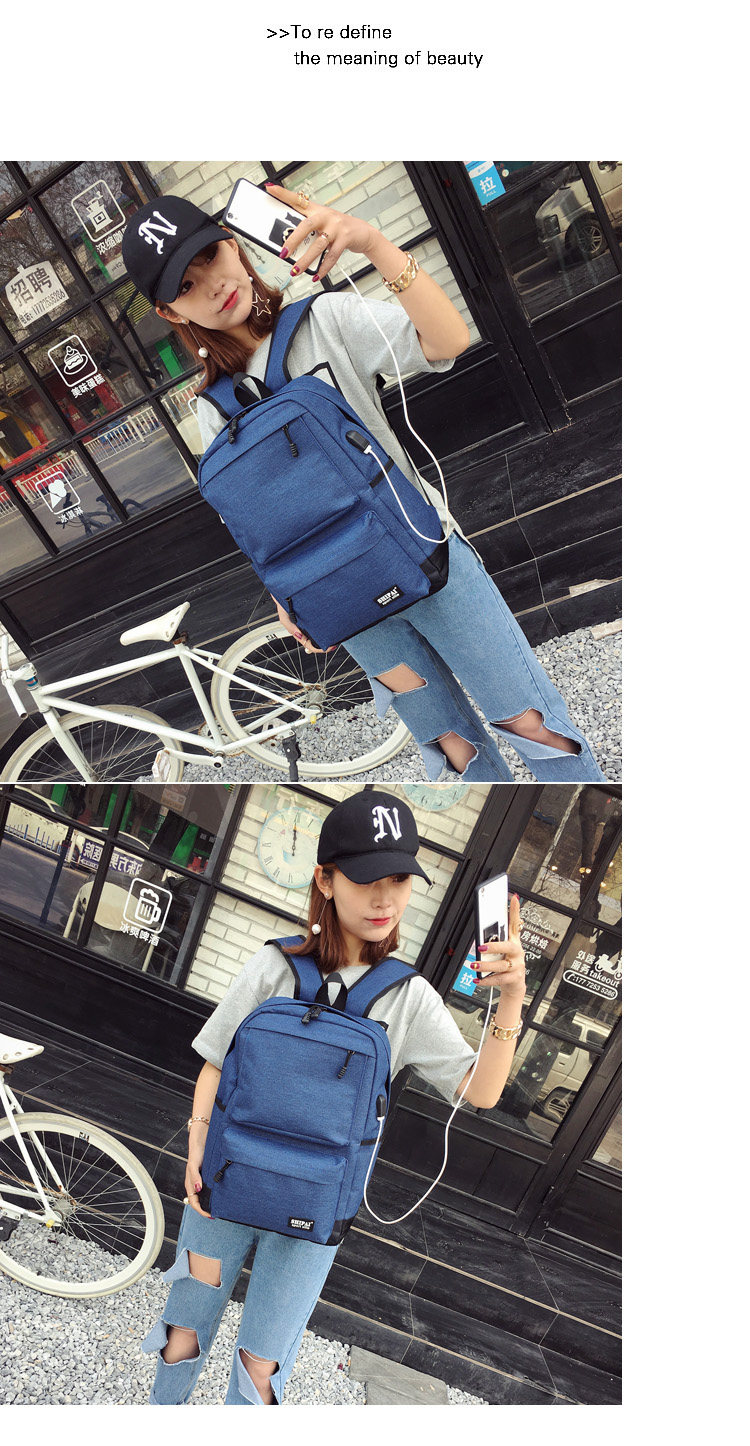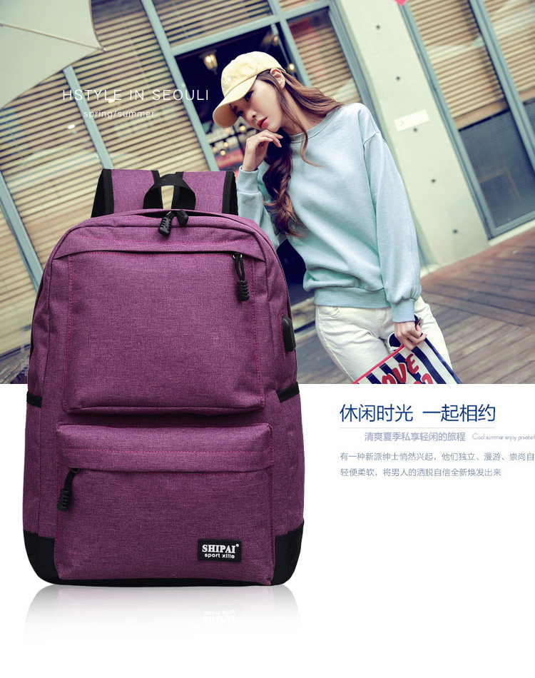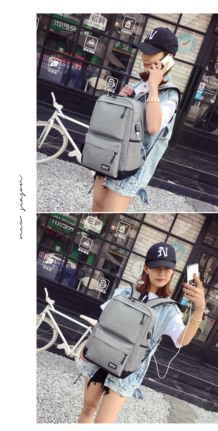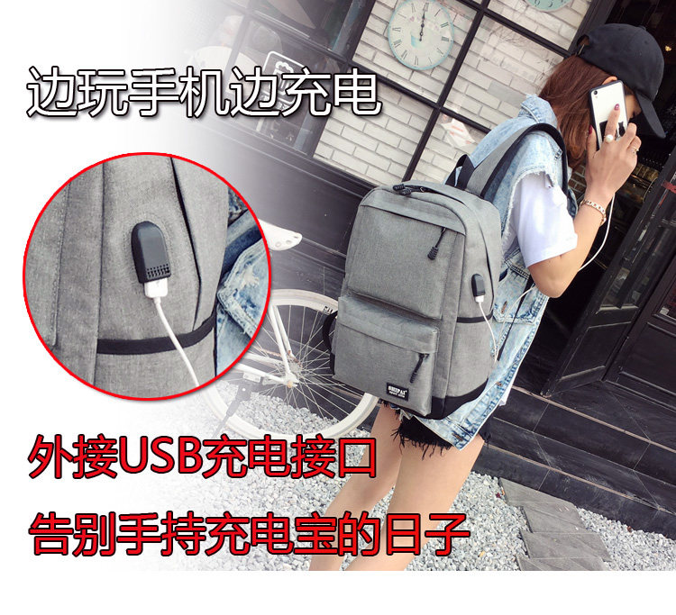 Product details of Trendy men and women shoulder bag canvas travel backpack external usb charging interface