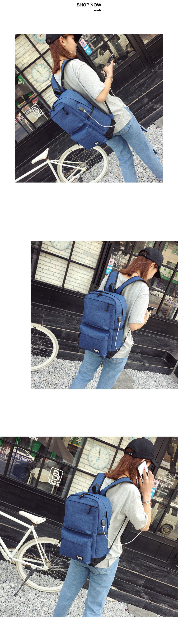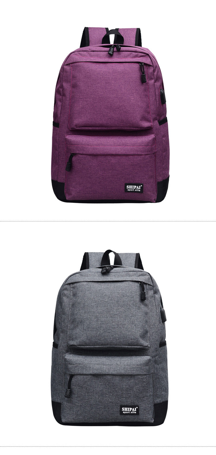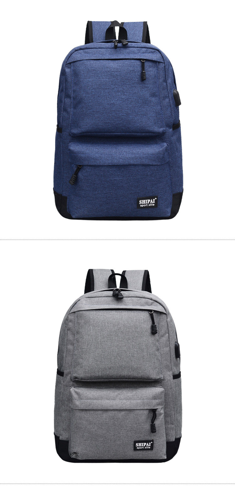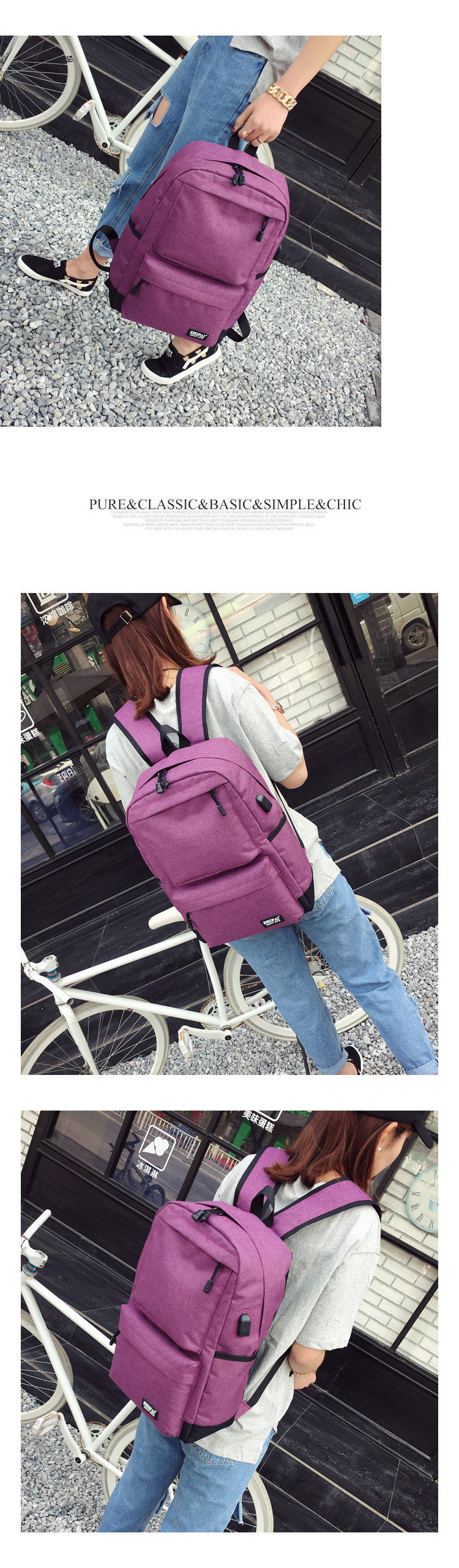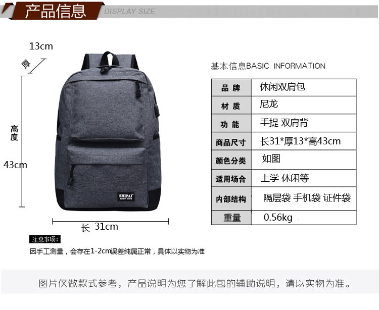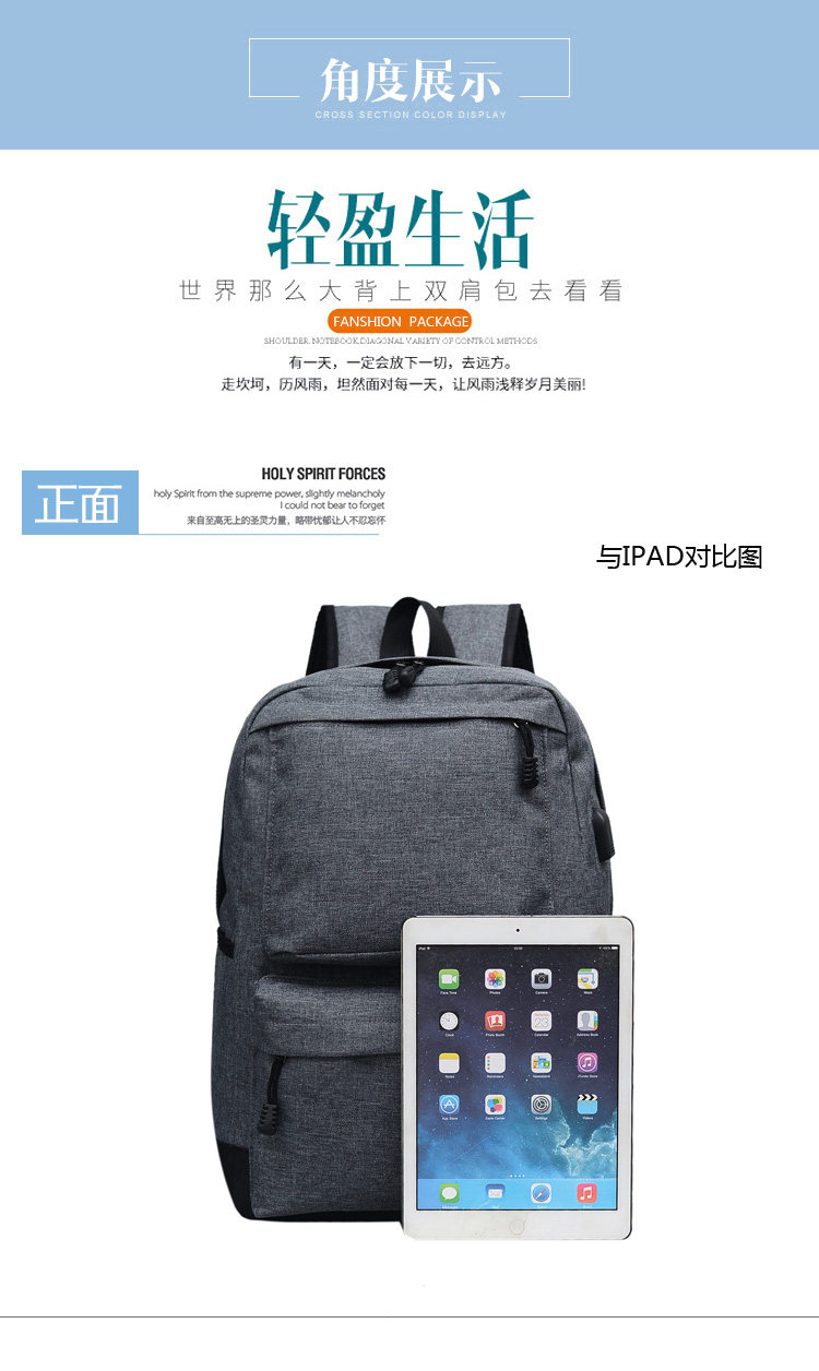 Product details of Trendy men and women shoulder bag canvas travel backpack external usb charging interface