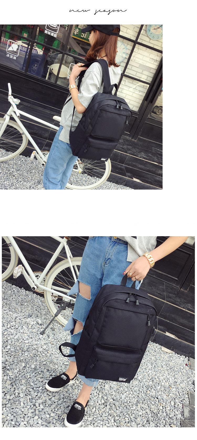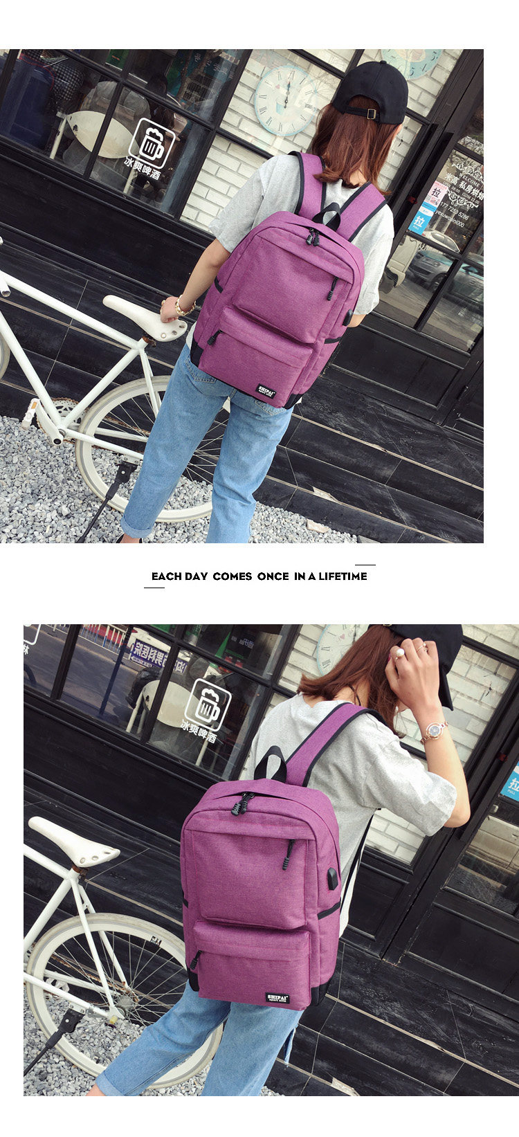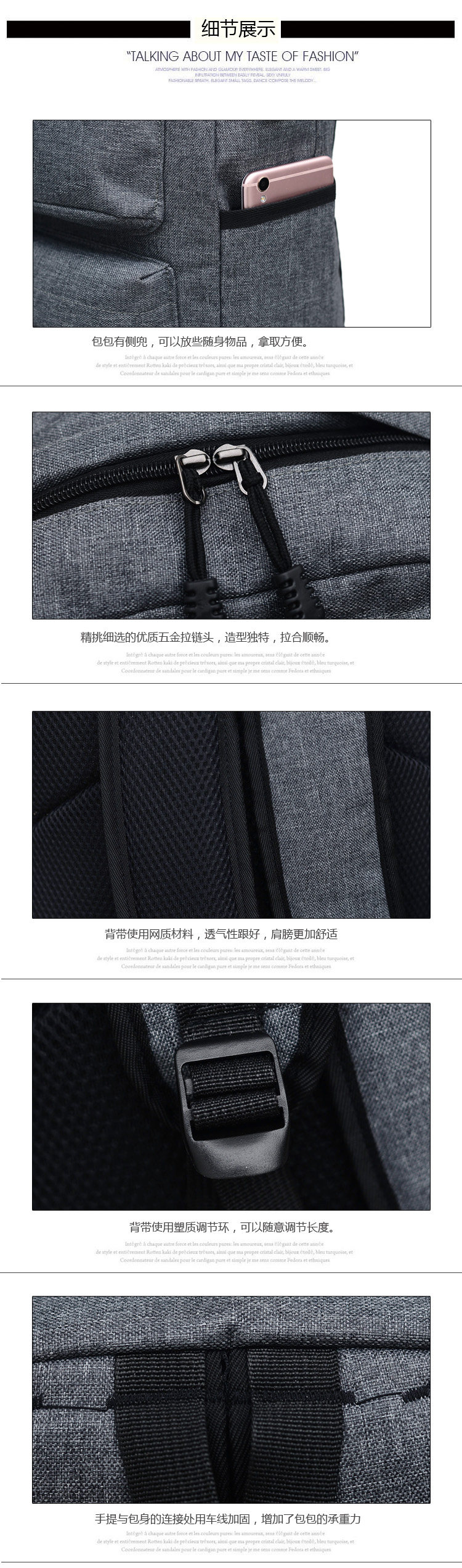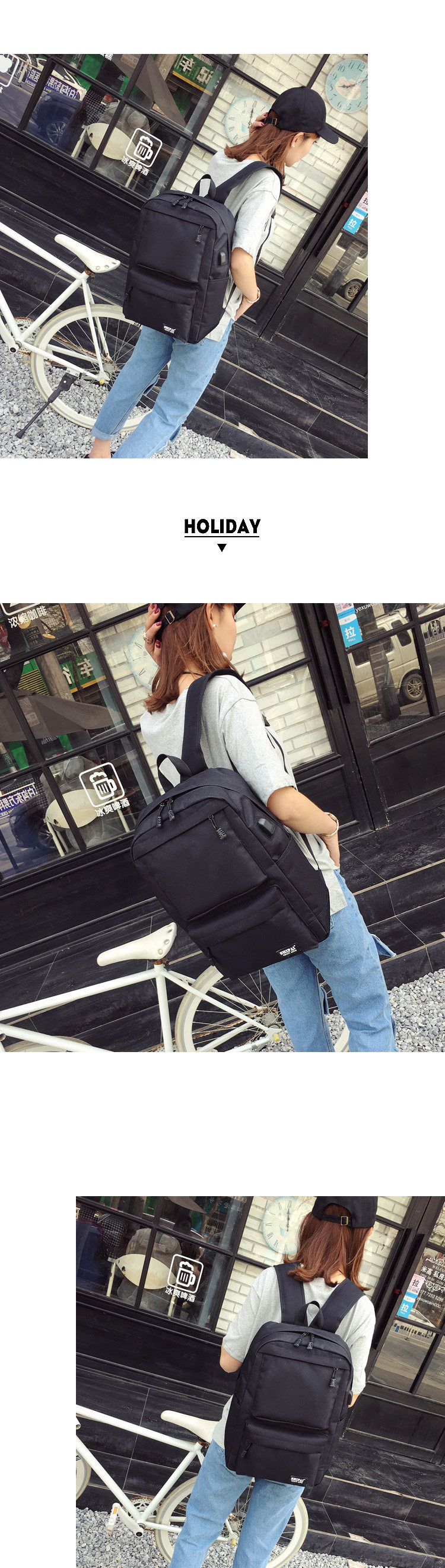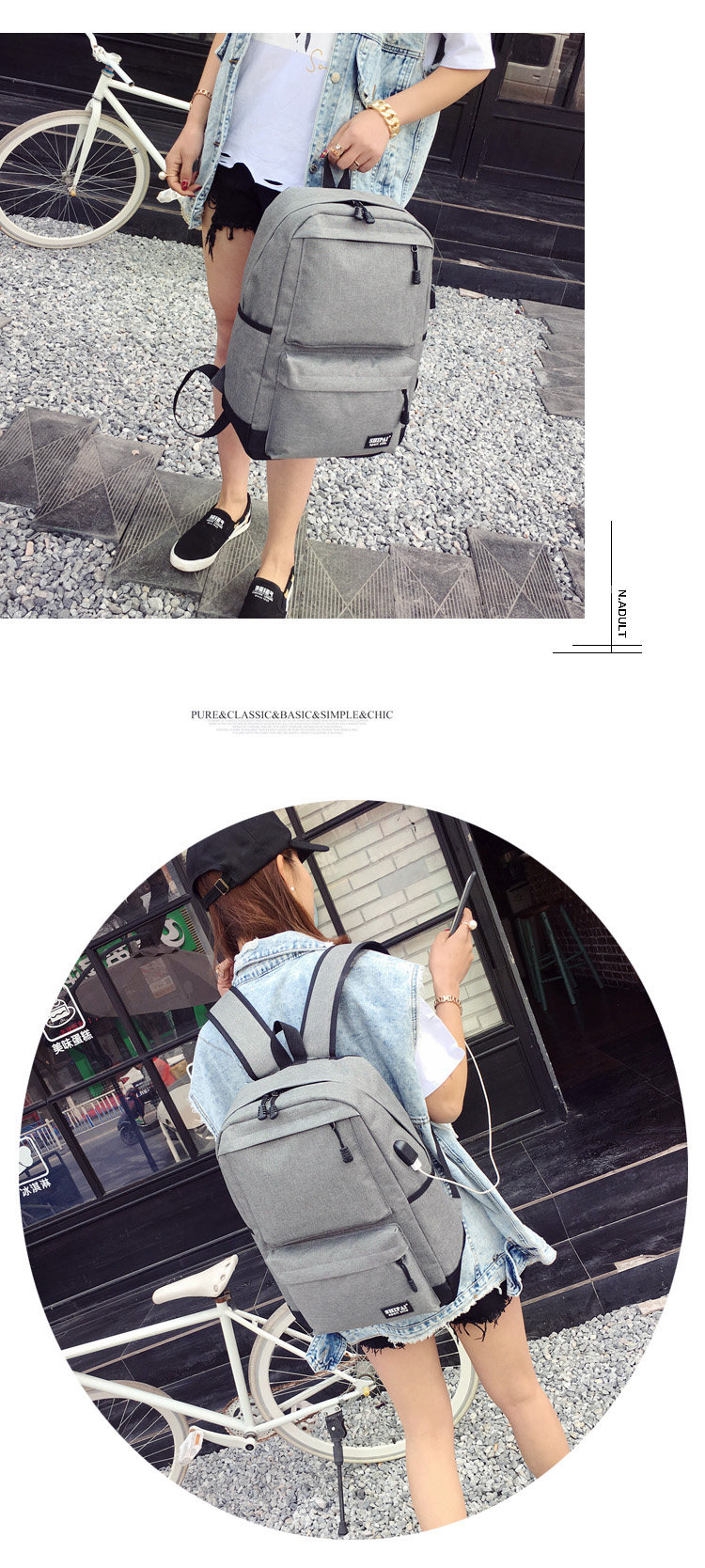Product details of Trendy men and women shoulder bag canvas travel backpack external usb charging interface