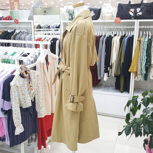 어깨선이 없는 라그란 스타일의 트렌치코트입니다 원버튼 라인이여서 오픈하여 착용시 앞선이 깔끔하게 떨어지며 소매선이 슬림하게 나와 날씬하게 연출할수 있습니다(55사이즈기준 총장 106cm입니다)