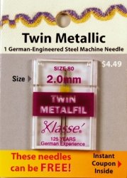-. Title : Klasse' Twin Metallic Needles Size 80 - 2.0mm