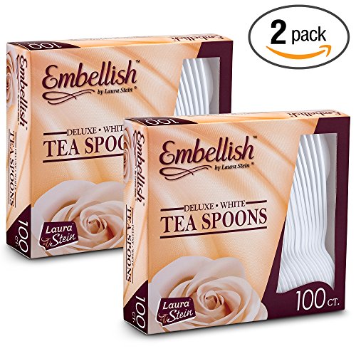 Embellish Cutlery Deluxe Heavy Weight White Plastic Tea Spoons 100 Tea Spoons In A Box Pack of 2