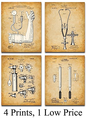 Bring a little whimsy to your Home or Doctor's Office. These four prints show patents filed between 1887 and 1927. The original patent artwork has been reinterpreted by award winning artist Norm Lanier.