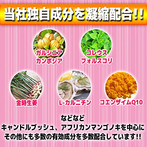 主要成分(サプリメント・化粧品):ガルシニアカンボジア・アフリカマンゴノキ・キャンドルブッシュ・金時ショウガ・ギムネマ・コレウスフォルスコリ・L-カルニチン