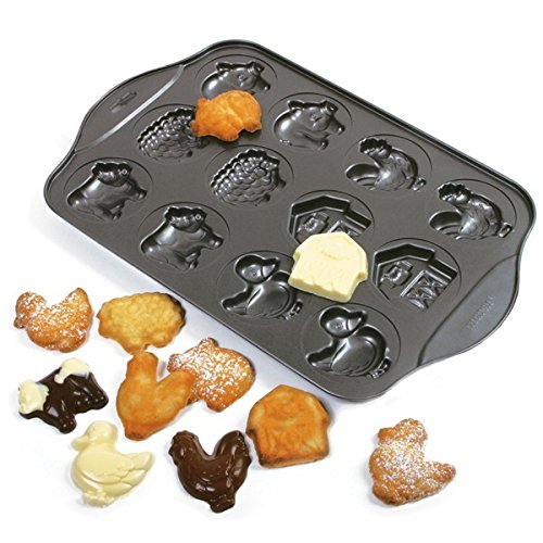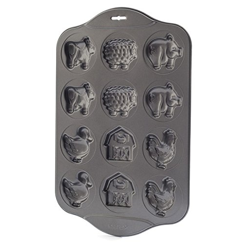 Pan with 12 barnyard shapes for cookies or use as a candy or chocolate mold