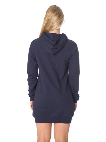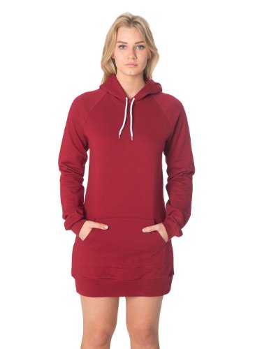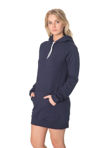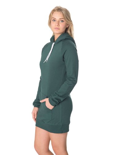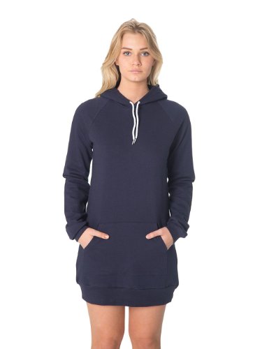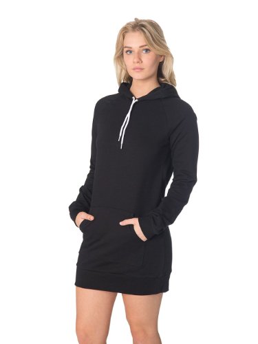 This dress has a classic hoody pullover feel but has a feminine fit with extra length. Can be layered or worn as a dress. Unlike typical synthetic fleece, our California fleece is made of 100 percent extra soft ring-spun combed cotton, pre-laundered for minimal shrinkage. Extra thick for extra warmth, yet breathable.Feature