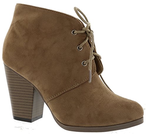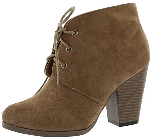 Top Moda Women's Sueded Lace Up Stacked Chunky Heel Closed Toe Bootie