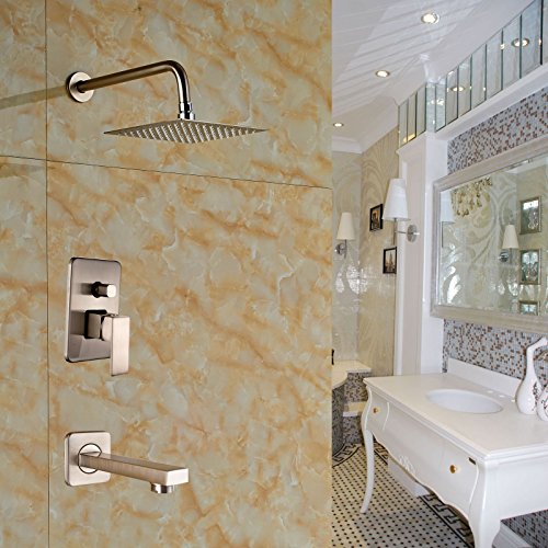 Rozin® Brushed Nickel 2-way Mixer 10" Square Rainfall Showerhead with Tub Spout Wall Mounted