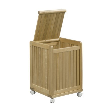 -. Title : Abingdon Solid Birch Wood Mobile Hamper with Lid, Blonde