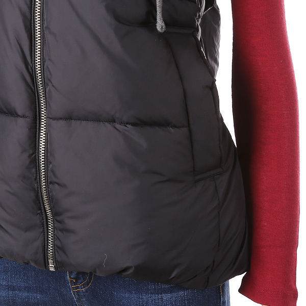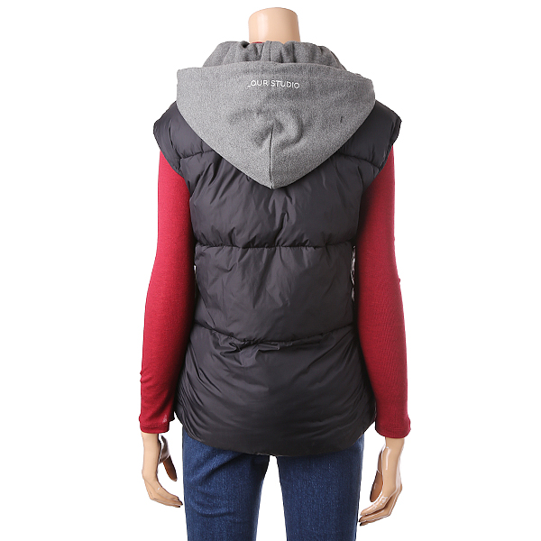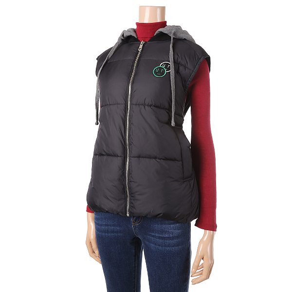 블랙 색상의 후드 장식이 있는 다운 점퍼로 고급스럽고 캐주얼한 분위기를 느낄 수 있습니다. 추운 겨울철에 체온을 보호해주며 키카 커 보이는 효과를 줍니다.