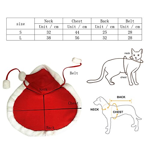 -. Feature : ✪Soft textile, very comfortable for your puppy to wear in Christmas. It'll keep your dog warm and comfy in the winter and he'll be the center of attention at holiday parties. / ✪Two sizes, large and small dogs can wear.Please measure your pet size and compare with the size chart in the description before purchasing. / ✪Cloak design makes it easier for pets to wear. / ✪The fabric is soft, comfortable and fit with pet hair. Pets are more comfortable to wear. / ✪Seller commitment: 100% new high quality, if you have any questions, you can always consult us, we will give you a satisfactory answer.