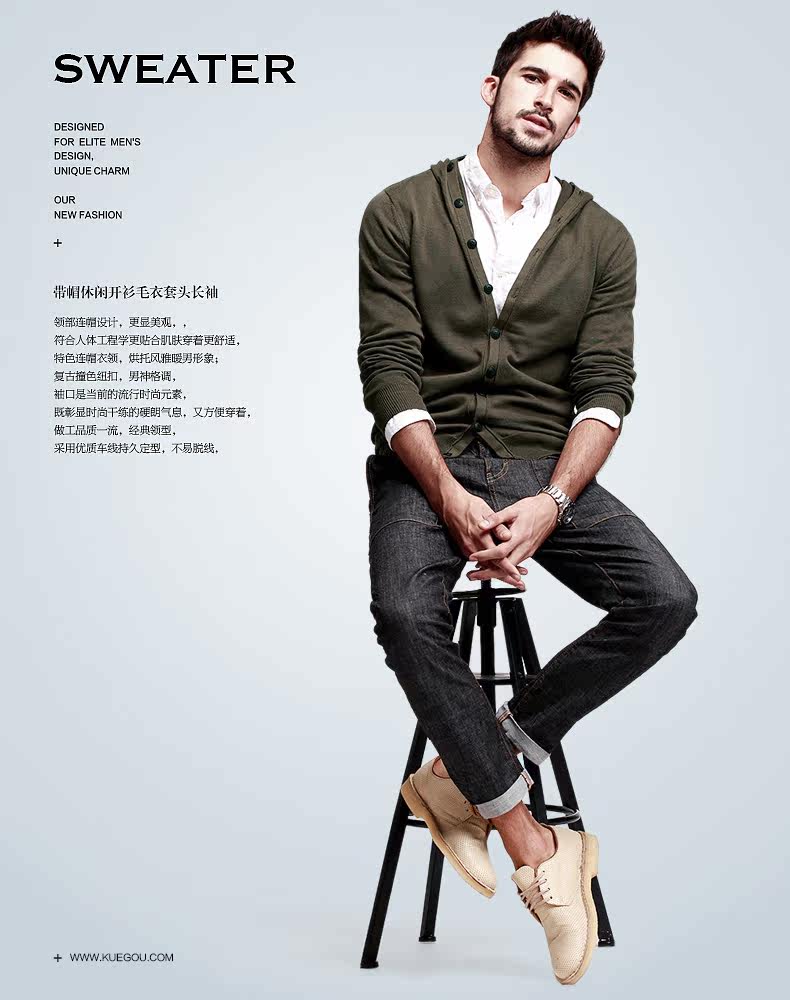 ③面料:精选上等针织面料,优异延展性,大牌剪裁,秋冬潮搭款,熟男必备!