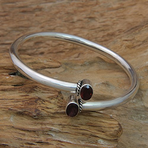 -. Binding : Jewelry -. Brand : NOVICA -. Department : womens -. Feature : An original NOVICA fair trade product in association with National Geographic. / Includes an official NOVICA Story Card certifying quality & authenticity. / NOVICA works with Komang Suastra to craft this item. / Includes an original NOVICA jewelry pouch to keep for yourself or give as a gift. / A keepsake treasure designed to be loved for years to come. -. Label : NOVICA -. Manufacturer : NOVICA -. MPN : 226618 -. PackageQuantity : 1 -. PartNumber : 226618 -. ProductGroup : Jewelry -. ProductTypeName : FINENECKLACEBRACELETANKLET -. Publisher : NOVICA -. Studio : NOVICA -. Title : NOVICA Garnet .925 Sterling Silver Bangle Bracelet, 7.5" 'Bound To You'