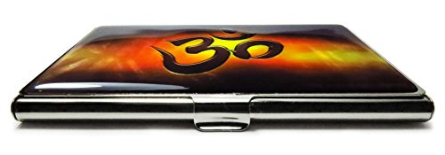 Business Credit Card Case Id Holder Slim Minimalist Wallet Metal Korean Mother of Pearl Yoga Aum Om (Brown)