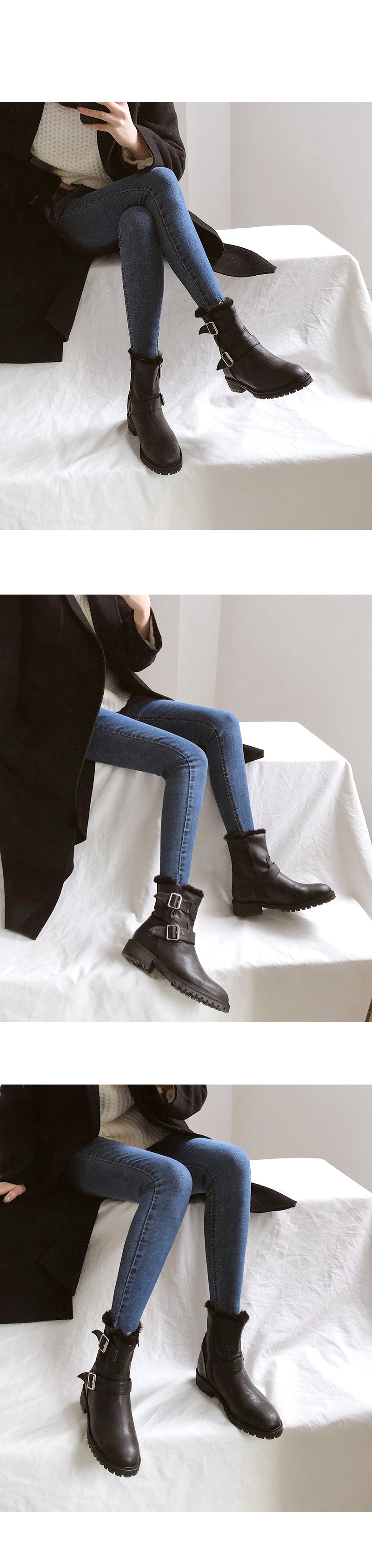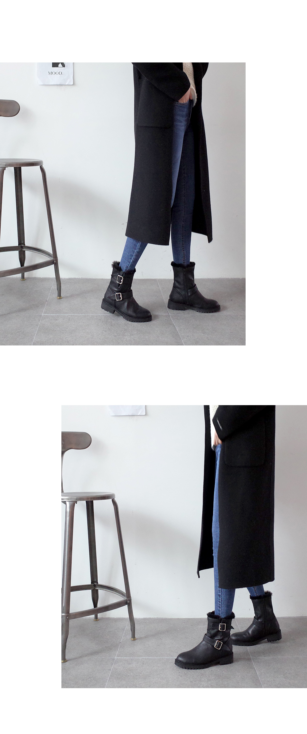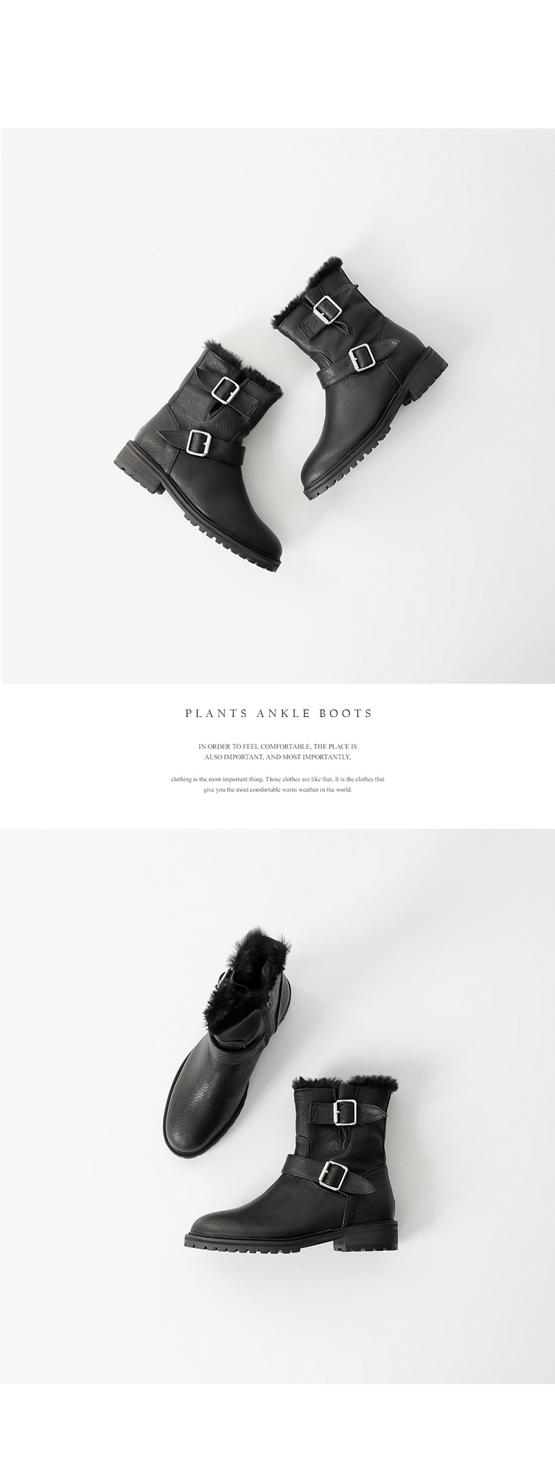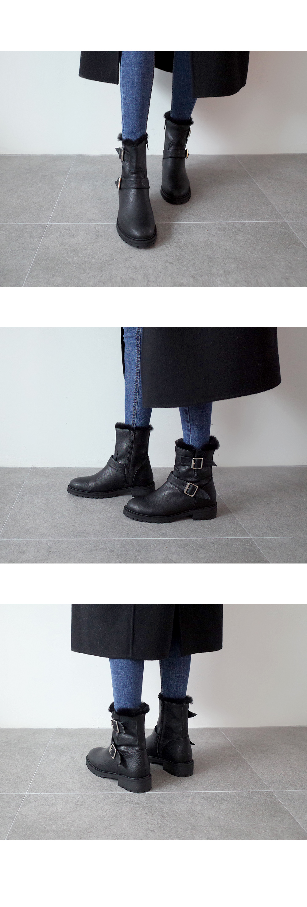 발목 퍼 장식으로 따뜻하게 착화되고 투 버클 스트랩이 심심치 않은 포인트를 줍니다.