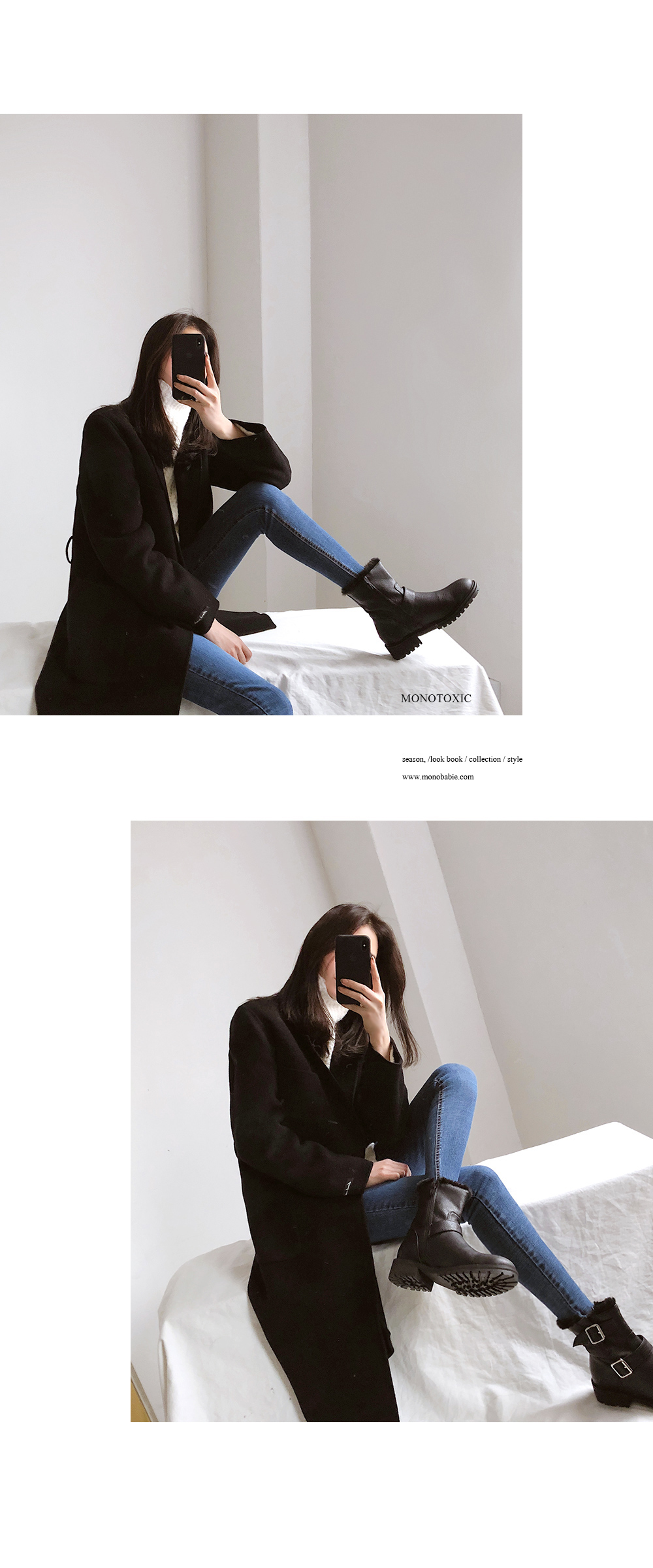 DETAILS - 소재 : 인조소가죽 인조퍼 - 컬러 : black - 안감 : 위쪽 털안감 - 피팅감 : 정사이즈 / 무게 : 보통인편 - 착화감 : 정사이즈로 편해요 - 모델피팅 : 235
