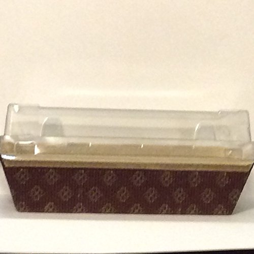 Bread and Loaf Paper Pans with clear dome lid 7 X 3 X 2 - 12 sets oven safe heavy duty self standing and brown and gold scrolled paper pen