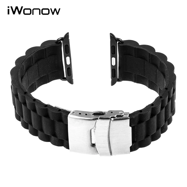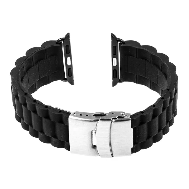 | [해외]실리콘 고무 손목 38 미리메터 42 미리메터 iWatch 애플 시계 스포츠 판 안전 버클 스트랩 손목 밴드 팔찌 블랙 + 어댑터 |
