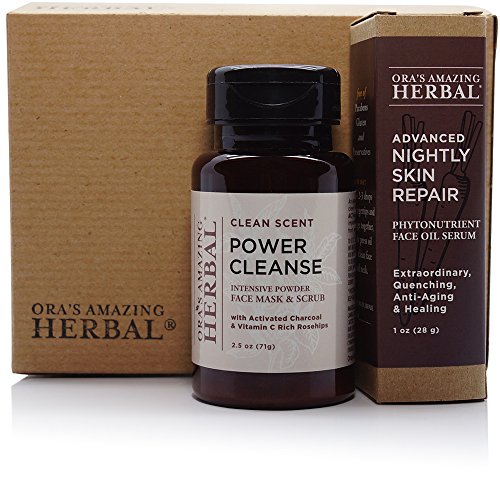 Fragrance Free Kit: Daily Nourish Face Oil: Vitis vinifera (Grapeseed Oil, Non-Gmo) Infused With Organic Calendula officinalis (calendula), Organic Symphytum officinale (comfrey), Organic Plantago major (Plantain), Organic Stellaria media (Chickweed), Organic Hypericum perforatum (St. John's Wort), Organic Arctium lappa (Burdock) And Organic Thymus vulgaris (Thyme), Organic Prunus armeniaca (Apricot) Kernel Oil, Limnanthes alba (Meadowfoam) Oil, Organic Olea europaea (Olive) Oil, Organic Rosa Canina (Rosehip) Oil. Power Cleanse (Unscented): *PLANTAGO MAJOR (PLANTAIN LEAF), KAOLIN CLAY, ROSA CANINA (ROSEHIPS) , HONEY, BOSWELLIA CARTERI (FRANKINSENSE), ACTIVATED CHARCOAL (FOOD GRADE WILLOW BARK SOURCE) - *ORGANIC. Scented kit: Clean Scent Power Cleanse Contains: ESSENTIAL OILS OF CEDRUS ATLANTICA (CEDARWOOD), EUCALYPTUS GLOBULUS (EUCALYPTUS), MENTHA SPICATA (SPEARMINT), CYMBOPOGON CITRATUS (LEMONGRASS), MELALEUCA VIRIDIFLORA (NIAOULI) - *ORGANIC. Advanced Nightly Ingredients: Vitis vinifera (Grapeseed Oil, Non-Gmo) Infused With Organic Calendula officinalis (calendula), Organic Symphytum officinale (comfrey), Organic Plantago major (Plantain), Organic Stellaria media (Chickweed), Organic Hypericum perforatum (St. John's Wort), Organic Arctium lappa (Burdock) And Organic Thymus vulgaris (Thyme), Organic Prunus armeniaca (Apricot) Kernel Oil, Limnanthes alba (Meadowfoam) Oil, Organic Calophyllum inophyllum (Tamanu) Oil, Organic Rosa canina (Rosehip) Oil, Unica granatum (Pomegranate) Oil, Daucus carota (Carrot) Essential Oil.