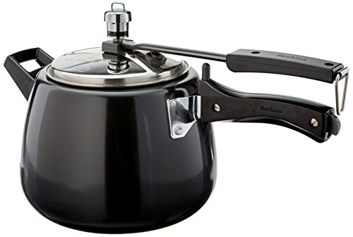 Enjoy healthy, homemade food everyday with the ease and time-saving convenience offered by this Contura Hard Anodized Pressure Cooker from Hawkins. The improved pressure regulator controls and regulates the pressure level inside the cooker. This pressure cooker comes with a curved body for easy stirring of food. Made from the finest aluminum material, this pressure cooker is resistant to corrosion. With a hard anodized body, this pressure cooker absorbs heat at a faster rate making it more energy efficient. Boasting of a black body, this pressure cooker heats faster and cooks food quickly.Feature