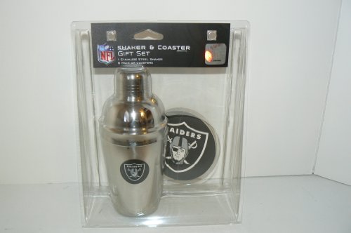 -. Title : Oakland Raiders NFL Stainless Steel Cocktail Shaker and Coaster Gift Set
