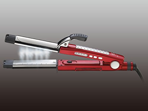 ◆ストレートもカールもこれ1台◆髪型や髪質に合わせて選べる5段階の温度調節機能◆最高約200℃(ストレート時)の高温設定◆鏡のように輝くミラー調パイプ&プレート◆スチーム量が2段階に調整できるので、お好みのヘアセットが可能に◆自動電源OFF機能(約60分)◆収納、持ち運びに便利なポーチ付き / ■ 仕 様 ■パイプ径(約):32mm プレート温度(約):140~200℃(5段階)※周囲温度30℃の場合 電源:AC100V(50/60Hz) 消費電力(約):142W 寸法(約):幅32.0×奥行3.8×高さ7.7cm 質量(約):420g 電源コード長さ(約):1.9m 付属品:専用ポーチ、スポイト、やけど防止プロテクター /Feature