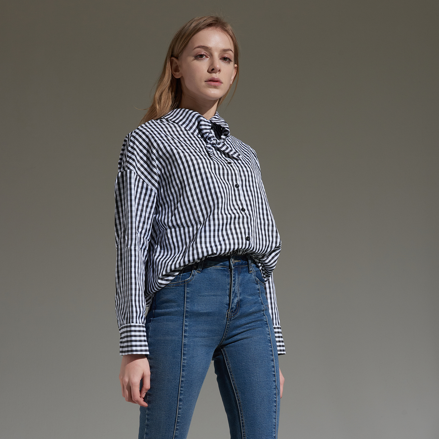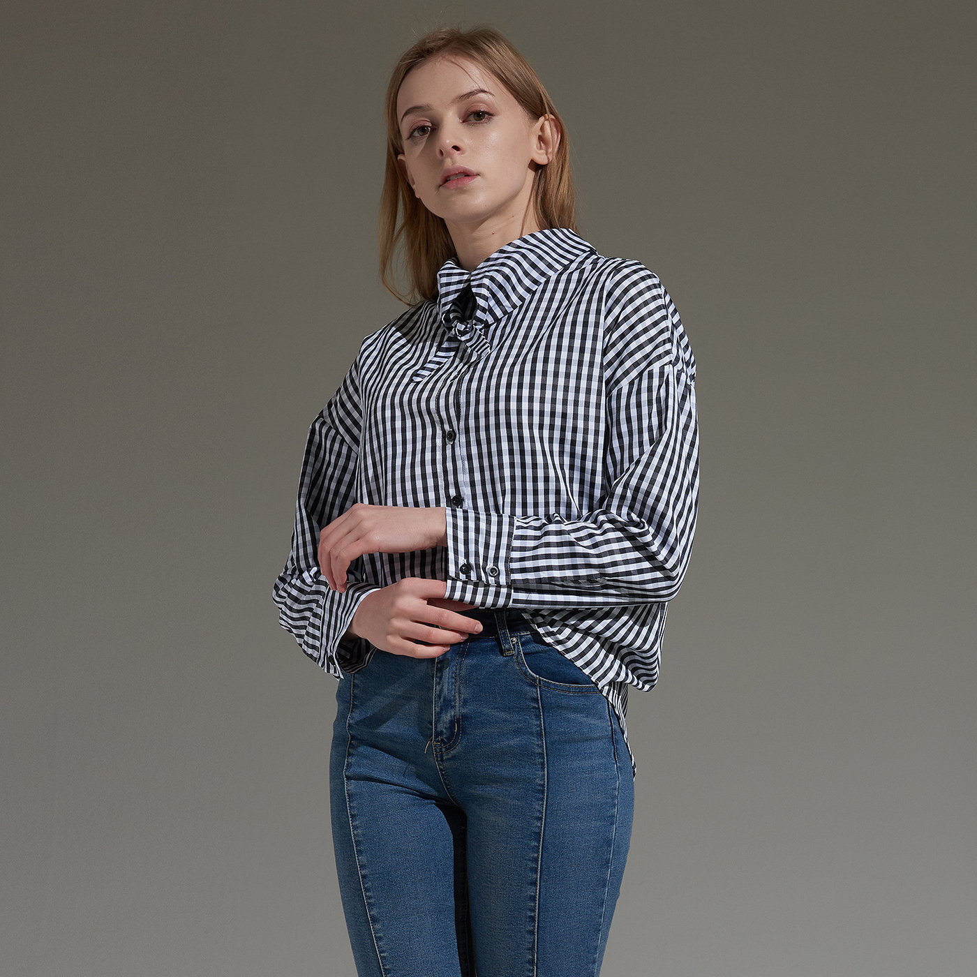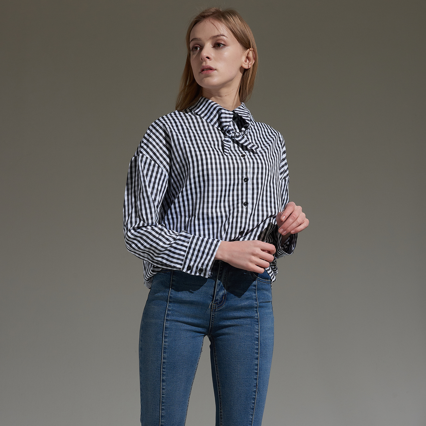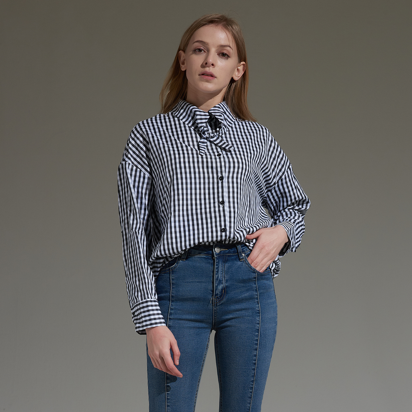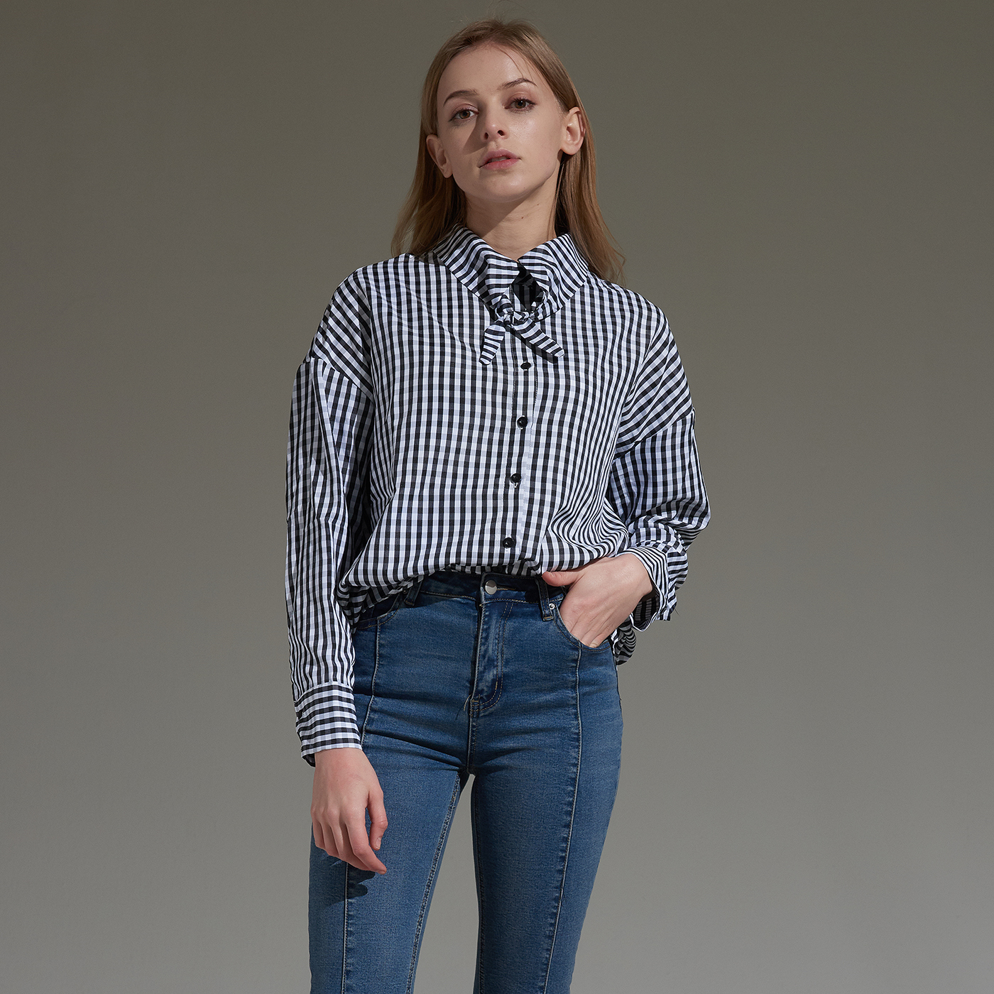 시원한 소재의 깅엄 체크 타이 셔츠입니다.
