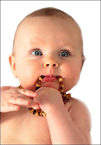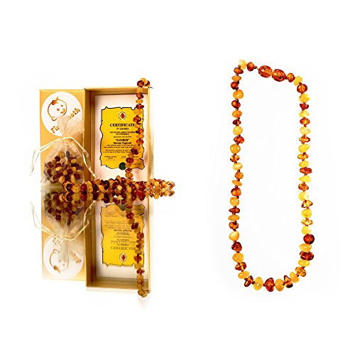 First Tooth 100% Natural Non Toxic Safe to Chew on Amber Teething Necklace (UNISEX) – Handmade in POLAND.Nature's Anti Inflammatory, Pain-relief, Reduced Drooling CERTIFICATE OF AUTHENTICITYMulti)