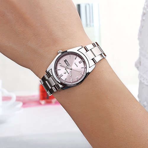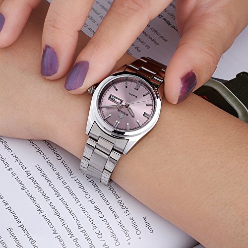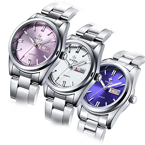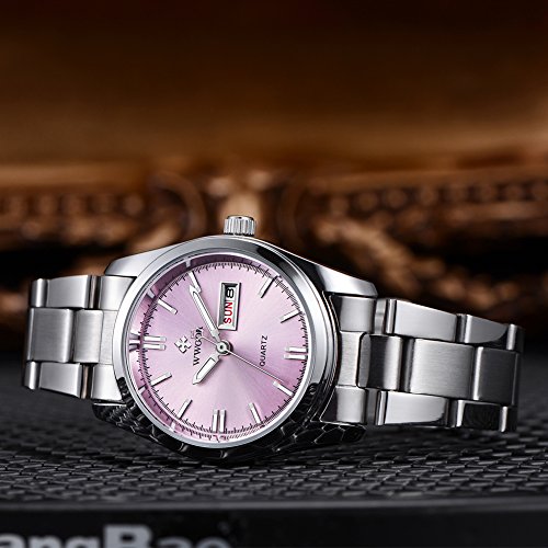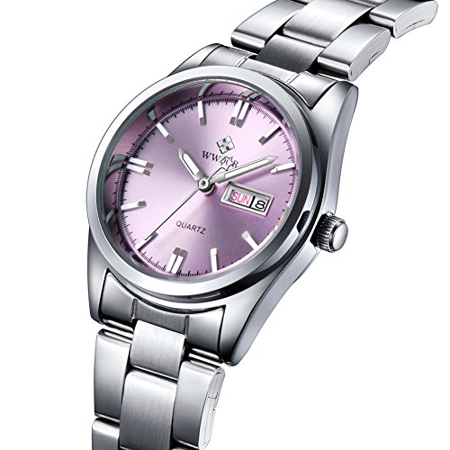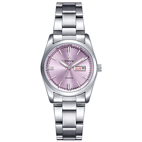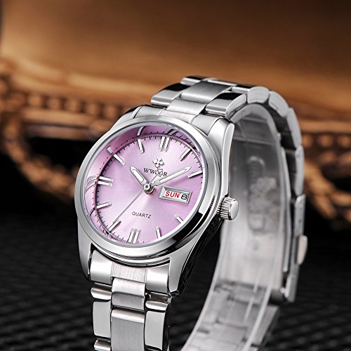 Top Luxury Brand WWOOR Women's Pink Dial Quartz Date Clock Stainless Steel Casual Watch (04-P)