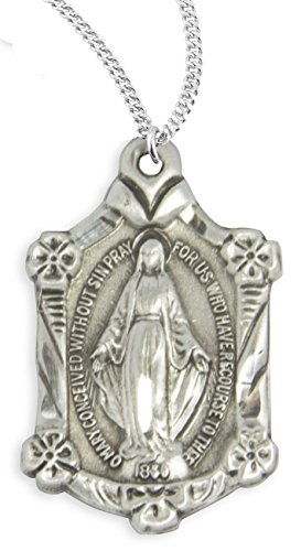 -. Binding : Jewelry -. Brand : HMH Religious -. Department : womens -. EAN : 0794348317042 -. Feature : SIZING: 7/8 inch x 9/16 inch / QUALITY: This top quality pendant is made from Genuine .925 Sterling Silver / CHAIN INCLUDED: Tarnish Resistant 18 Inch Plated Lite Curb Stainless Steel Chain with clasp. / EXPERIENCE: Finest Quality Jewelry. American Craftsmen. Made in USA -. Label : HMH Religious -. Manufacturer : HMH Religious -. Model : HMLC-S113718 -. PackageQuantity : 1 -. ProductGroup : Jewelry -. ProductTypeName : FINENECKLACEBRACELETANKLET -. Publisher : HMH Religious -. Studio : HMH Religious -. Title : Women's Sterling Silver Miraculous Pendant with Flowers + 18 Inch Stainless Steel Chain -. UPC : 794348317042