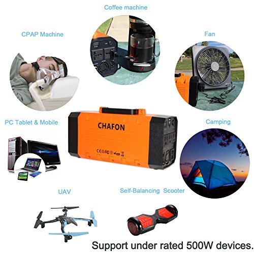 Chafon CF-UPS018 346WH Portable UPS Uninterrupted Power Supply(Pure Sine Wave) Lithium Battery with Car Jump Starter,Grounded U.S. Standard Outlets -Orange