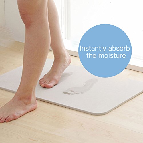 - √SUPER ABSORBENT CAPACITY. Diatomaceous bath mat is a sedimentary rock, the number of its pores is 5000-6000 times as many as the charcoal, so with amazing water absorption, and easy to dry. In just a few seconds, almost all of the contact part of the water can be inhaled, and then quickly restored dry within a minute or two, not easy to breed bacteria and mold.