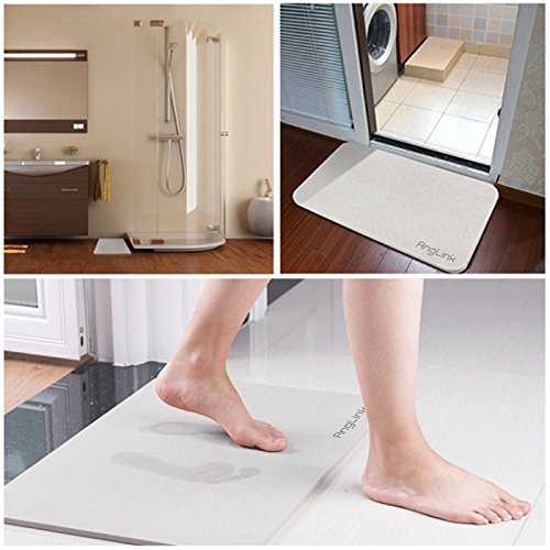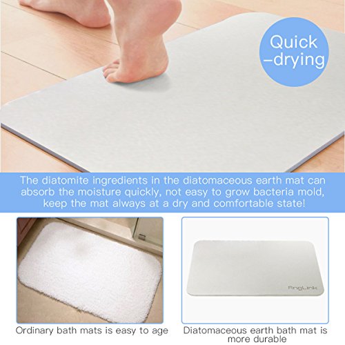 - √HEALTHY & COMFORTABLE. AngLink diatomite bath mat is a flat, stable and hard board, the raw materials of which were the ancient phytoplankton – diatom, a kind of natural mineral, without any chemical coloring agent, completely harmless to the human body. It not only has a strong water absorption but also has a good antibacterial property, can absorb the harmful substances in the air such as formaldehyde, helpful to indoor air purification. It is a safe, comfortable multi-functional bath mat.