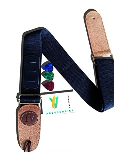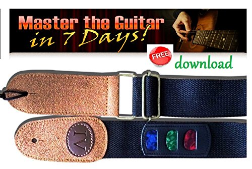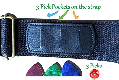 Cotton Guitar Strap with three Pick Pockets - three free Guitar Picks - bonus ebook Mastering Guitar