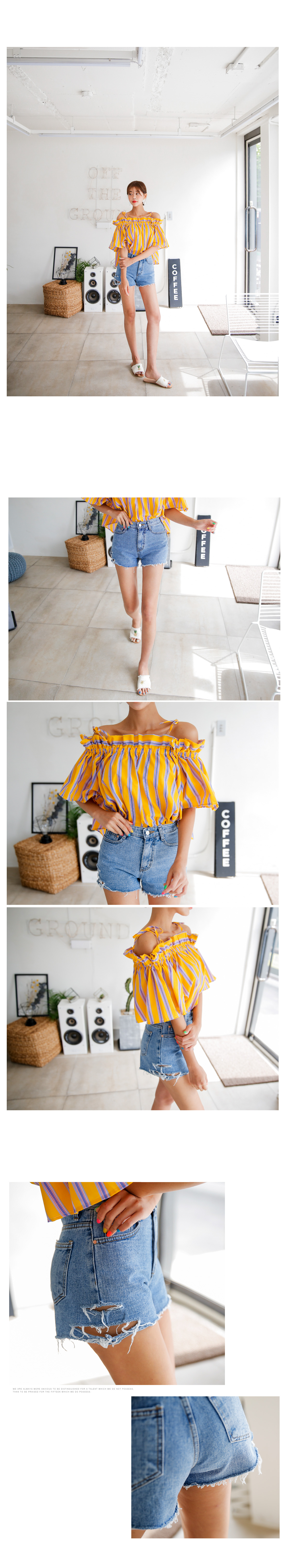 デニムのショートパンツ紹介差し上げます。 しっかりしたチョジクガムの