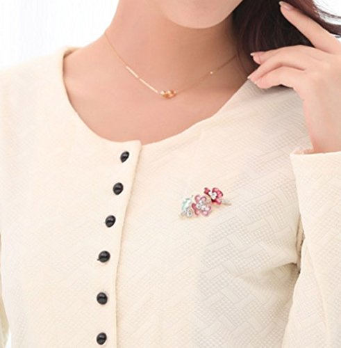 -. Title : Sojewe Women Rhinestone Rose Gold Plated Leaf Floral Flowers Brooch Pin