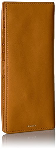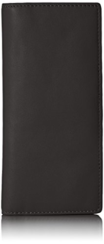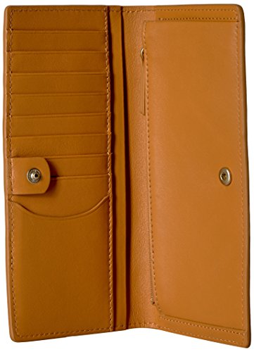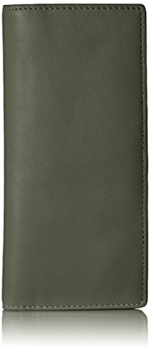 The slim vertical wallet opens to reveal Nine credit card slots, three bill slots and one zippered change compartment.