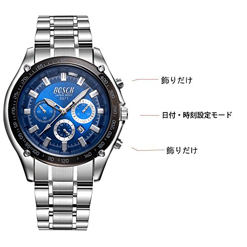 원본상품명: 腕時計 アナログ表示デジタル表示 クォ?ツ 日付 防水 夜光 ステンレス留め金 スポ?ツウォッチ メンズ 海外ブランド (BOSCK-5571-BLUE)