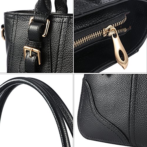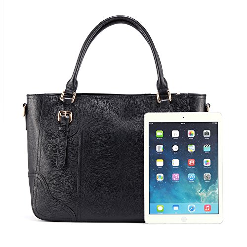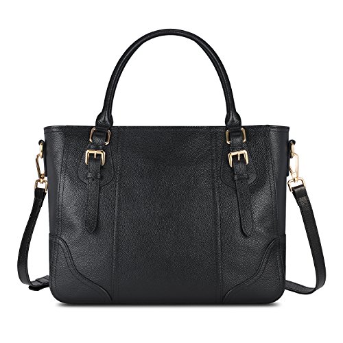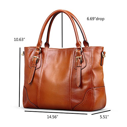 Vibrant colors and special twin buckle design freshen up this Kattee leather satchel handbag. Designed with top handles and adjustable shoulder strap, you could use it as a tote, shoulder bag or crossbody bag. If you're looking for a combination of vintage and modern styles in a leather shoulder bag, just click "ADD TO CART" now!