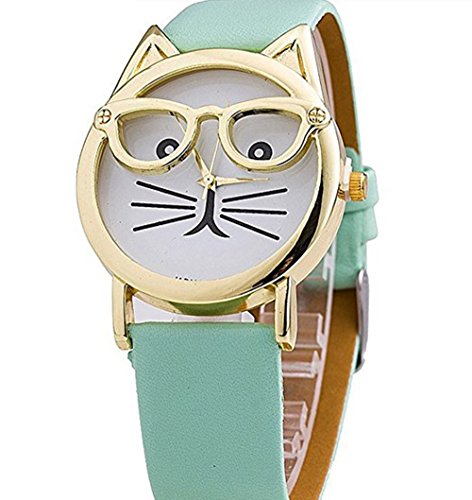 여성 러브 리 워치 초귀여운 안경 고양이의 손목시계 (그린)